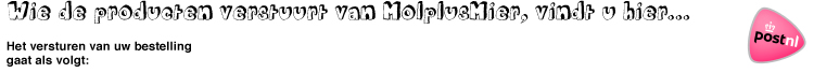Mol plus Mier verstuurt bestellingen op werkdagen via PostNL als brievenpost. In het algemeen worden bestellingen waarvan de betaling ontvangen is, nog dezelfde dag verzonden mits op voorraad (maximaal binnen 5 werkdagen). Voor speciale bestellingen wordt een levertijd afgesproken.
