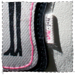 iPhone hoesje: Binnenkant gevoerd met lichtgrijs gemeleerd vilt Sleutelhanger: 14 cm lang met lintjes en ring Boekenprint met fluor accent: A5 formaat |